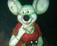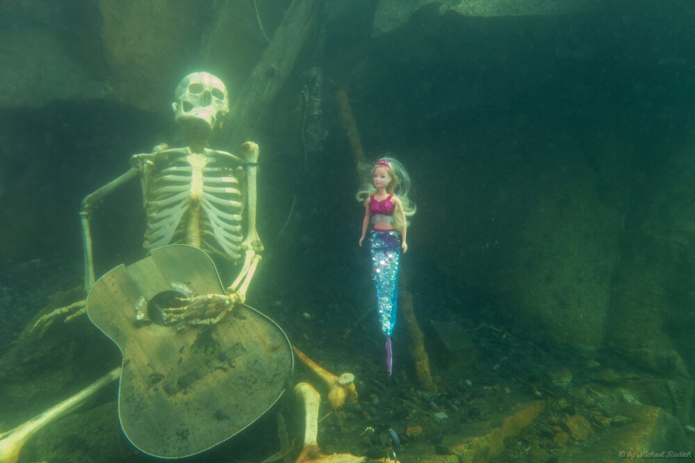 Gollum, der Gargoyle von Horka Tauchgang mit der Aufstellung des Gargoyle im See.
